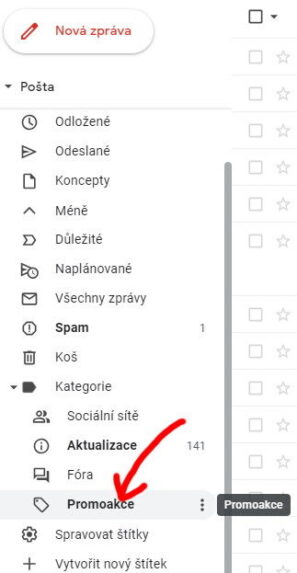 Návod pro Gmail, pokud máš záložku Promoakce: