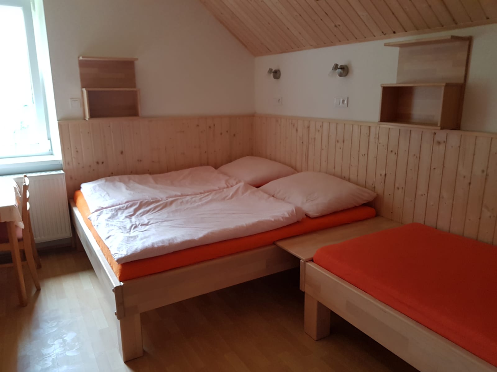 Ubytování - tří nebo čtyřlůžkové pokoje - ubytovací kapacita 16 účastníků, možnost přespání ve vlastním stanu.